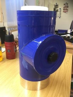 Vollfolierung eines edelstahl Aussenkamins, dem Farbton des Firmen CI entsprechend: