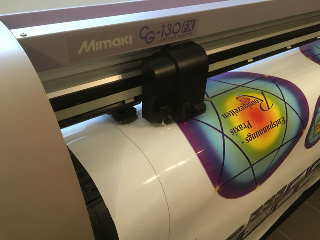 Die gedruckte und mit einem Schutzlaminat versehene Folie kann videosensorgesteuert konturgenau geschnitten werden.
