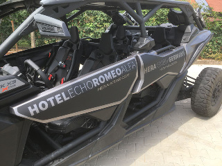 So darf auch mal ein Buggy oder ein anderes Freitzeitfahrzeug mittels Folie in Szene gesetzt werden.